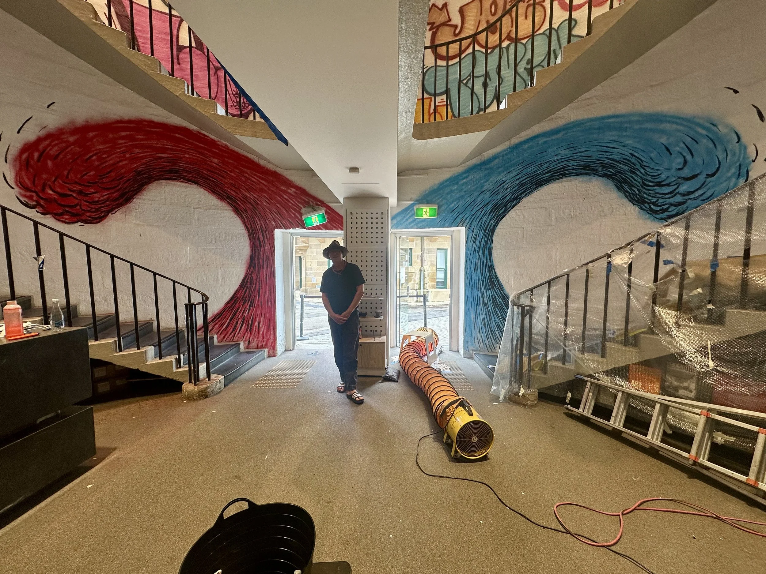 Paul: Art wise... Hmmm, I love most of the things I create and there’s a lot so I won’t bore you! Painting on bridges and walls is pretty exciting at my age. I’ve published some kids books (that I should promote more!) My friends and I have a pub near Byron Bay (The ELTHAM) which is one of the coolest things in my world. Art and surfing, surfing and art.